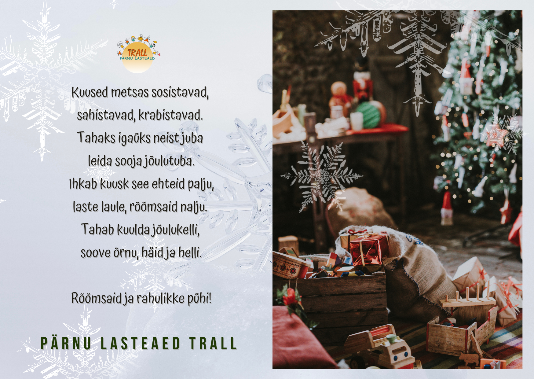 JÕULULAAT Loomise kuupäev 06.12.2025 Autor Maarja Akkermann Mänguasjavahetus pakkus rõõmu paljudele. Loomise kuupäev 05.12.2025 Autor Maarja Akkermann TRALL 47! Loomise kuupäev 06.11.2025 Autor Maarja Akkermann Leivanädal Loomise kuupäev 08.10.2025 Autor Maarja Akkermann Vaata rohkem